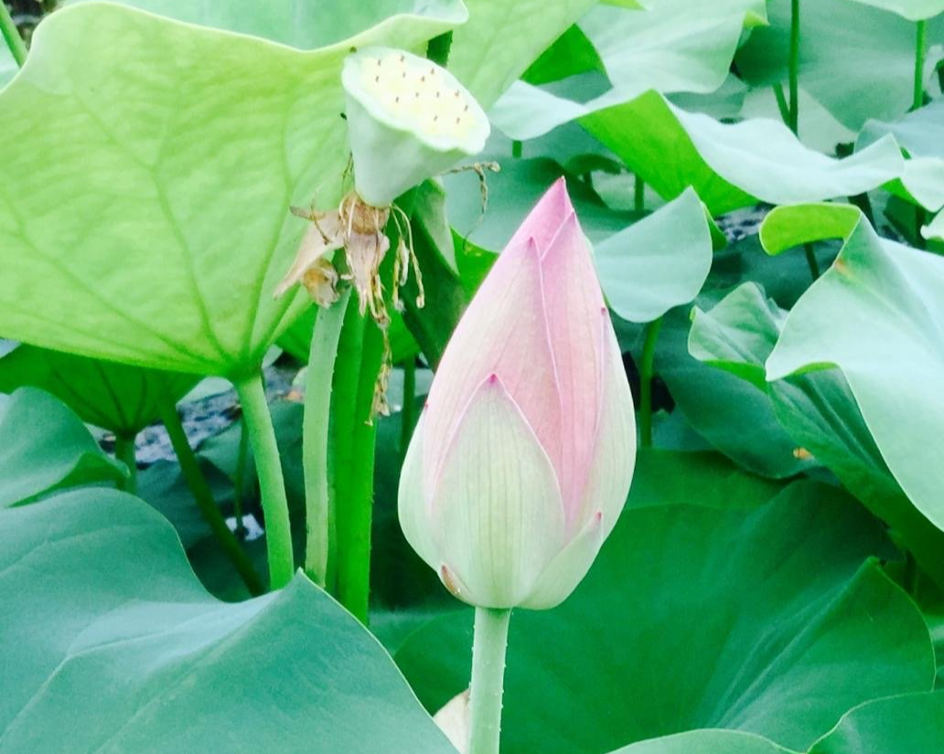 It is important when doing traditional lotus arrangements to remember that flower buds and curled leaves represent the future, open leaves and flowers the present and finally dead leaves and seed heads the past.